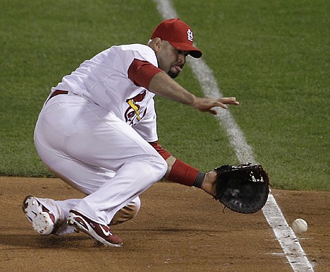 The Cardinals took a 2-0 lead in the fourth after Pujols hit - or was hit by pitch, more precisely. The St. Louis star was plunked on the lower left leg to start the inning, Matt Holliday sliced a double and Berkman chopped a two-run single down the first base line.