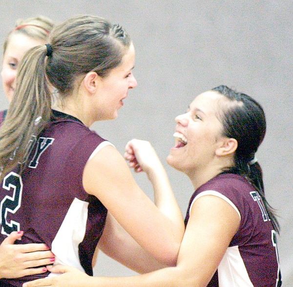 Michaela Curry left and Alanah True-Silva vs Noxon 8-25 Joyous moment after defeating Noxon
