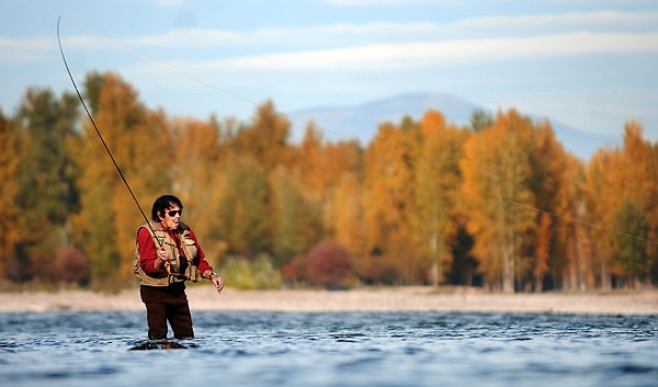 Robert Tebeau of Kalispell fly fishes Wednesday afternoon on the Flathead River east of Kalispell.