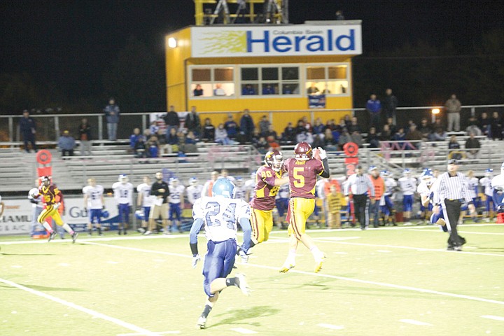 On the first play of the fourth quarter, Bryce Perez hit pay dirt to give the Chiefs some breathing room. The PAT was blocked, but Moses Lake had increased its lead to 22-12.