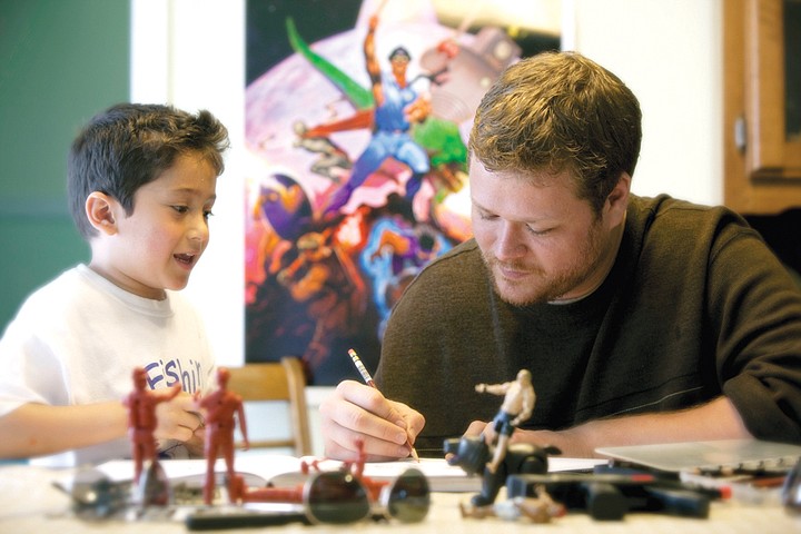 "Axe Cop" isn't work for Malachai. It's just fun and games, pretty much the same games he always played with his brother. The only difference is that they get to play together a lot more.