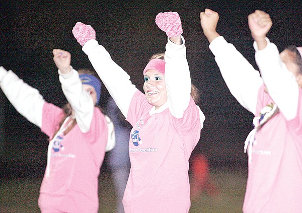 Mariah Briskin, center, cheering vs C-Falls 10-21-11