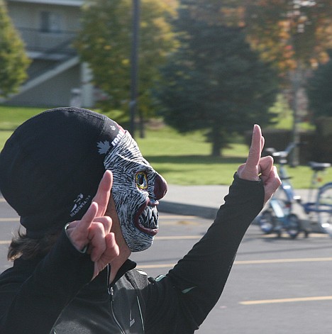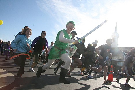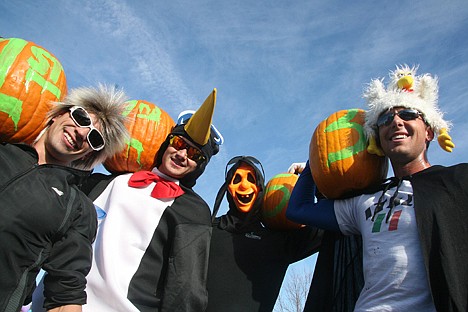 Heath Wiltse, 36, of Coeur d'Alene, frightened his way to fifth place in his "Ghoul Pumpkin" mask and sleek black running costume.