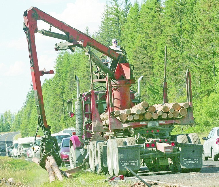 A logging truck overturned on Highway 2 at about 10:11 a.m. on Aug. 26, spilling a load of logs across the highway.