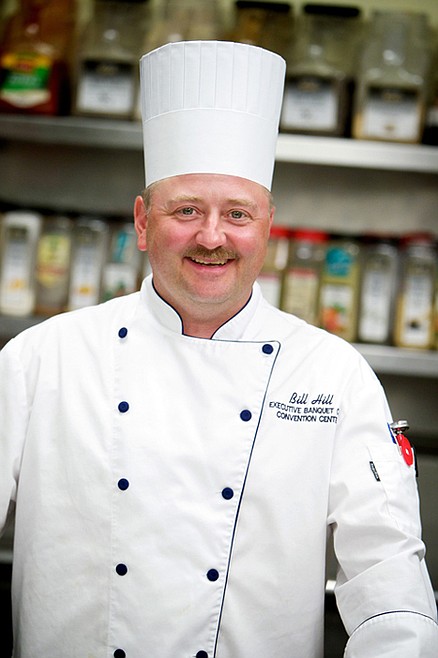 The 44-year-old today leads a staff of 40-60 dishwashers, prep cooks, pastry chefs and line cooks, depending on the season. He is the man behind the creation and service of more than 1,000 meals each day. He's responsible for breakfasts, lunches and dinners in the convention center that boast annual sales of around $6 million.