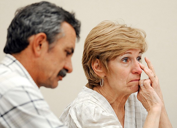 Cheryl Lee Criswell wipes her eyes as attorneys give their opening statements Sept. 6, 2011. She and her husband, Edwin, are appealing their conviction of aggravated cruelty to animals.