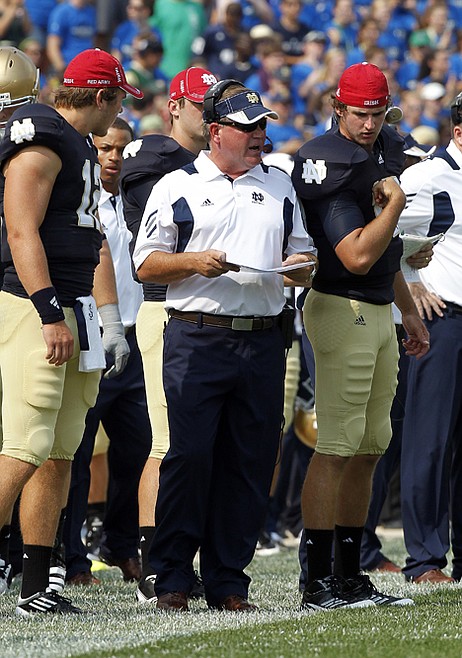 SOUTH BEND, Ind. - Here are two things Notre Dame coach Brian Kelly never expected to be doing on the first Sunday of the new season.