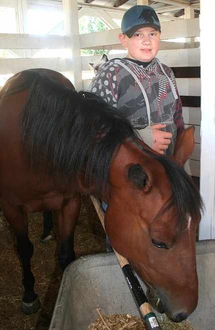 Alan Chojnacky and his kitten Squirt tend to the stall of Alan's horse, Jurassic Sunday at the Sanders County Fairgrounds 4-H building.