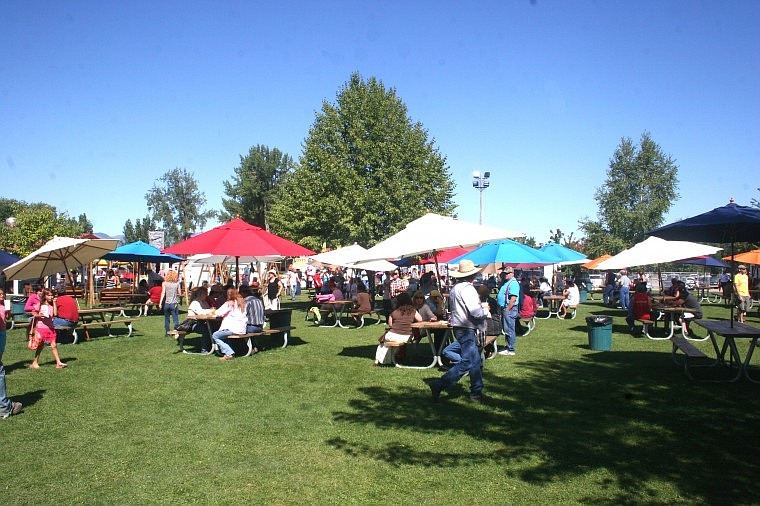 People seek shade under the many umbrellas at the Sanders County Fair. The grounds were hailed as looking very nice this year.
