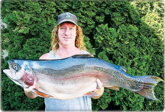 The 46-year-old reeled in a colorful 15-pound, 32-inch native rainbow trout from Hayden Lake about 7:30 p.m. Monday. He landed it in the Coopers Bay area using orange Powerbait with a size 18 treble hook, eight-pound line.