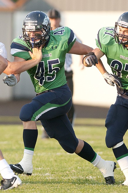 Luke Halliburton (45) chases down the ball during Glaciers loss to Helena High last Friday night at Legends Stadium.