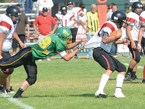 Whitefish senior linebacker Jimmy Boles pressured Indian