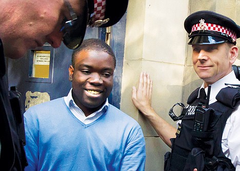 Wearing a light blue sweater and a white shirt, the 31-year-old Adoboli stared at the ceiling as the proceeding got under way. Smiling occasionally, he spoke only to confirm his name, birth date and address in a swanky east London apartment building. His lawyers made no comment to waiting reporters as they left the City of London Magistrates' Court.