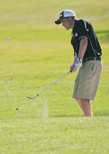 Flathead's Michael Lavin chips onto the first green during the second round of the Glacier/Whitefish/Flathead Invitational golf tournament at Buffalo Hill Golf Club Saturday morning.