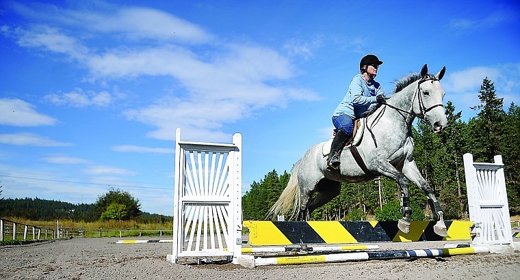 Pam Quinby of Lakeside works on her show jumping with Lollypop, an Irish Gray, on Thursday afternoon in Lakeside.