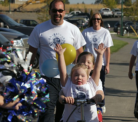 COEUR d'ALENE - Elliot Clemens, 7, smiled and gave his mother, Rebecca, a great, big hug Saturday morning after he crossed the finish line of the Step UP for Down Syndrome Walk at Riverstone Park.