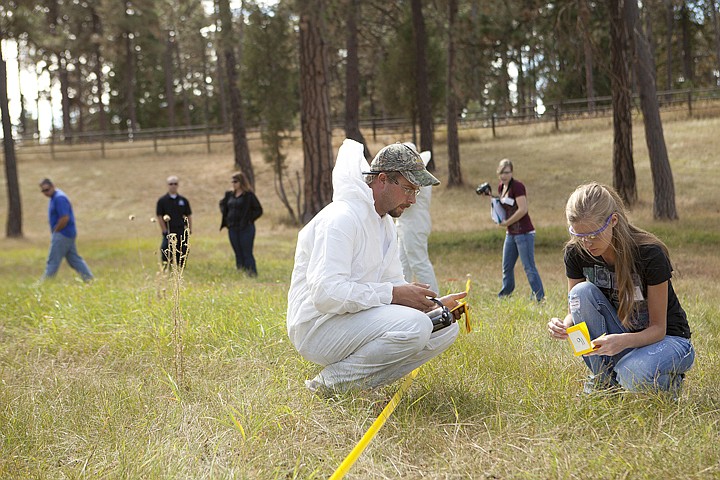 It was like an episode of the television “CSI” shows on Monday morning at Flathead Valley Community College, but with dummy dead bodies, students in the white forensic jumpsuits and real police officer consultants.