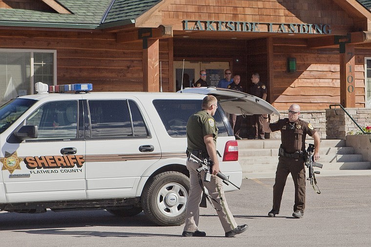 Law officers respond Wednesday afternoon to a robbery at Glacier Bank in Lakeside.