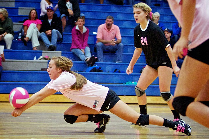 On the ensuing match point, Ashley Jibby's spike looked so certain it would fall, the Post Falls student section roared in apparent victory, but Demi Johnson dug the ball out for the Vikings, who silenced the Trojan faithful with a Kayla McGlathery kill.