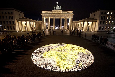 In Europe, 5,000 candles were lit in the form of a globe in front of Berlin's Brandenburg Gate before city officials switched off the monument's lighting.