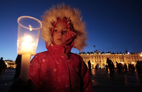 Across the Nordic nations, government buildings and municipalities joined in, including Stockholm's royal castle and the Swedish capital's huge globe-shaped sports arena. In Sweden's second-largest city, Goteborg, the main boulevard was bathed in an hour's darkness. People launched paper lanterns into the air in St. Petersburg, Russia.
