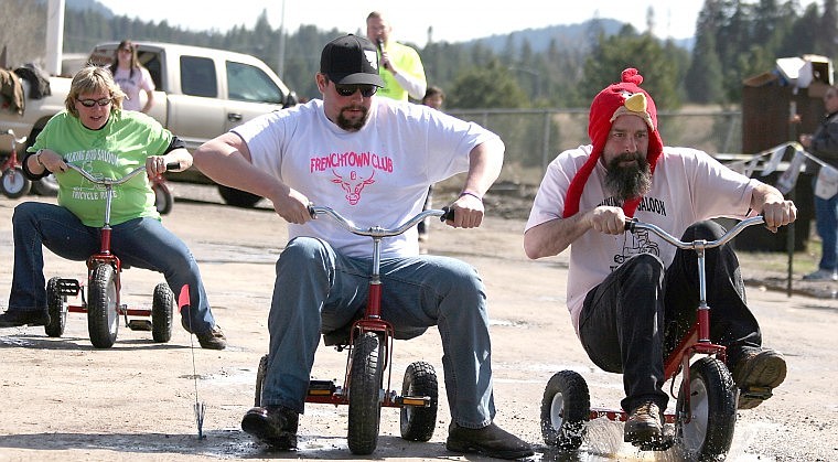 Jim Maston of St. Regis (right) makes a move past competitors during the ninth annual Talking Bird Trike Races.