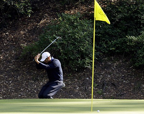 Woods is at 3 over, 12 shots off the lead, farther behind than he's ever been at the Masters. Late into the night Friday, using a spotlight provided by the club, Woods went to the practice range and pounded shot after shot into the darkness. His coach, Sean Foley, crouched alongside and tried to track the flight of the ball.