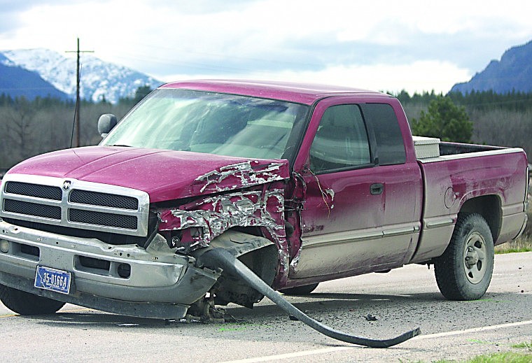 A Dodge Ram stuck two vehicles outside of “Trophy Taker” in Plains. The accident occurred on Highway 200 toward Thompson Falls at 4:08 p.m. on April 12.