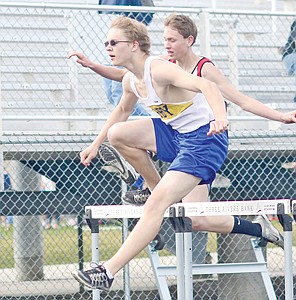 Errik Westlund competes in the 300 hurdles at the Flathead Time Trials April 10