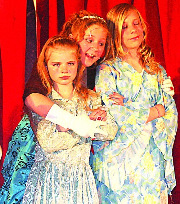 From left to right: Krysta Smiley, Tara Lee Ryan and Sarach Wood during a performance of "Cinderella" at Paradise School on April 13.