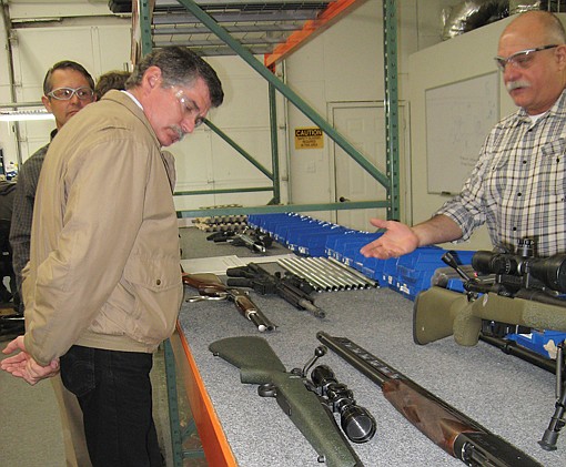 Rep. Denny Rehberg joined three members of the Montana Firearms Institute for a visit to one of the valley’s new firearms manufacturing companies on April 13 — Republican state Sen. Ryan Zinke, institute founder Chris Hyatt and Kalispell attorney Duncan Scott. The institute helps the growing industry by fostering communication, finding government contracts and lobbying in Helena.