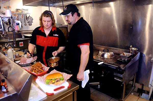 Dave and Elly Snyder working in their restaurant 'The Spot' in downtown Kalispell on Monday, April 16. The Spot opened in February of this year.