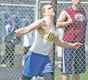 Senior Seth Hughes sends the discus 100' 8-3/4" in Tuesday's matchup with Columbia Falls