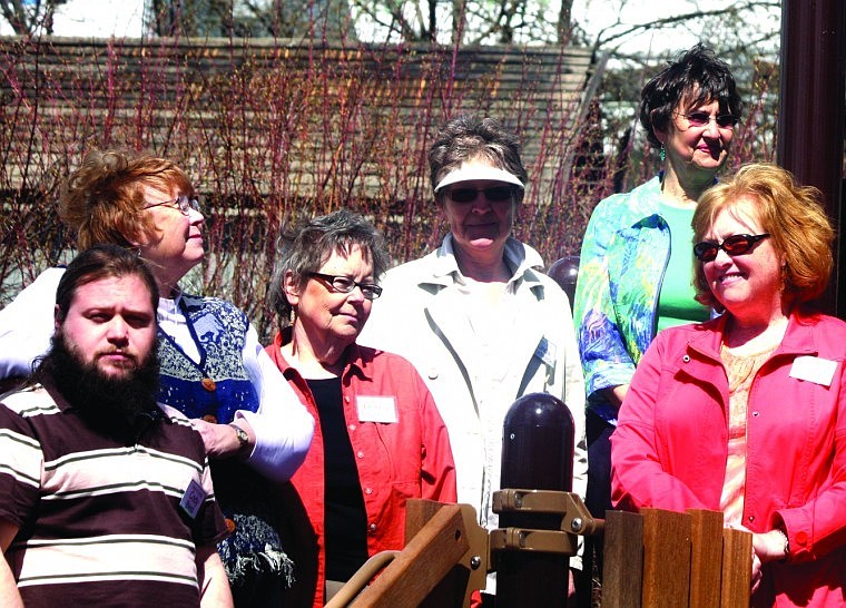 From left to right top:Thompson Falls Mayor Carla Parks, Penny Torgrimson, Linda Rocheleau, Rita Lundgren. Bottom: Cody Best and Katy Walton standing over the finished product right before the playground was open to the public on April 15.