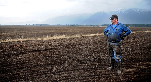 Dale Fisher surveys the fields as he prepares to sow 65 acres of spring wheat on Thursday morning east of Kalispell.