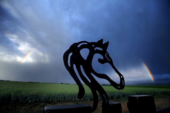 A rainbow lights up the sky over Rebecca Farm from West Valley Road on Thursday evening, August 2, west of Kalispell.
