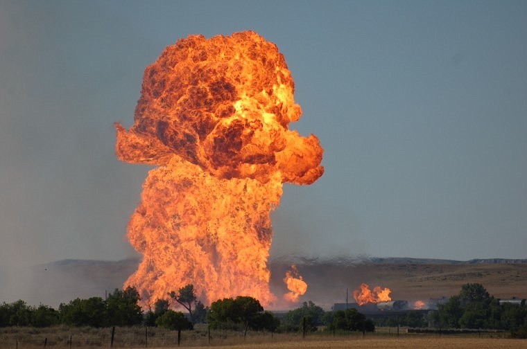 ISMAY (AP) — Sixteen rail cars caught fire and six exploded after a freight train derailed in an unpopulated area of eastern Montana, sending at least one fiery mushroom cloud into the sky, railroad officials said Monday.