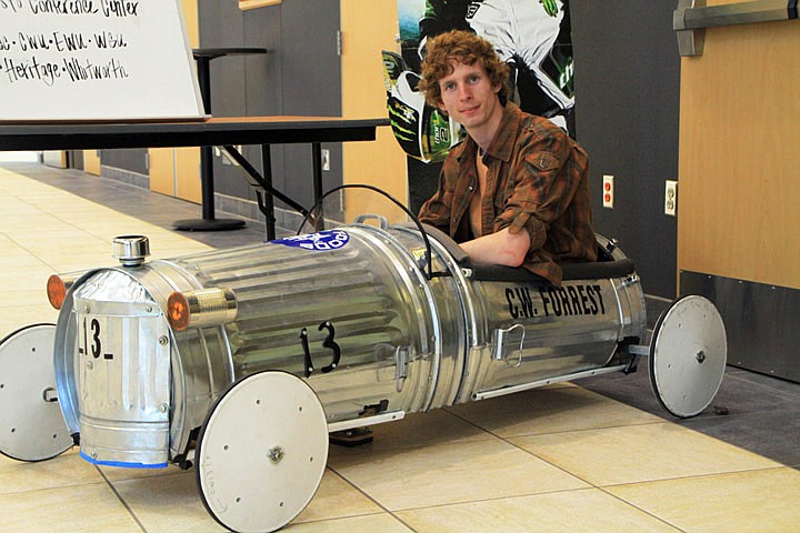 Math might have tripped up C.W. Forrest, of Soap Lake, who registered for pre-engineering courses for the fall semester. Forrest donated a car he made for the inaugural Soap Box Derby in Soap Lake.