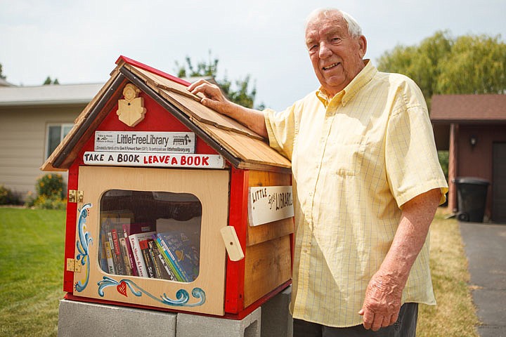 Rusty Halaas poses next to his Little Free Library outside his home in Kalispell.