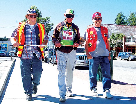Even more impressive, Stevenson is completing as much of the walk as possible blind-folded. Oftentimes, residents from the various cities he passes through volunteer to guide him through a stretch of town. While in Sandpoint, he received a little assistance from Bruce Emig of the Bonney Lake Lions Club in Washington and Charles Quenzer of the Sandpoint Lions Club flanked Stevenson to ensure he didn’t stumble as he passed through town.