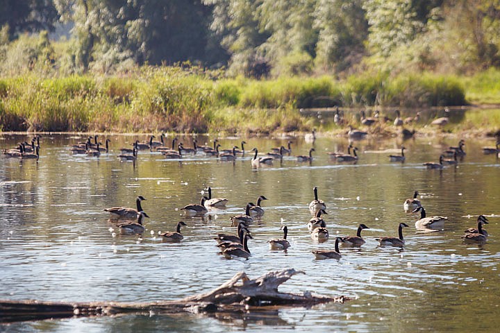 Canada geese on a channel of the Flathead River near Steel Bridge Road. Thursday, Aug. 9, 2012 in Kalispell, Montana.