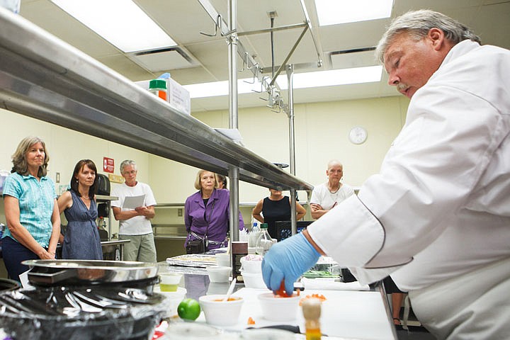 Patrick Cote/Daily Inter Lake Kalispell Public Schools executive chef Malcom Orser gives a cooking demonstration Thursday afternoon during at Flathead High School. Thursday, Aug. 9, 2012 in Kalispell, Montana.