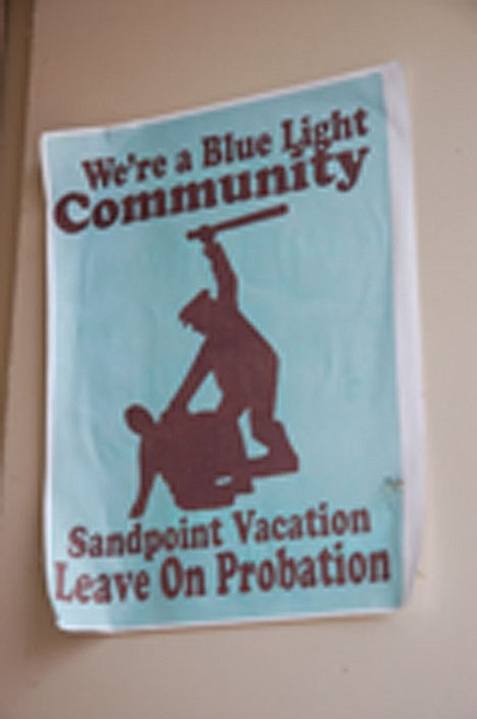 “Sandpoint Vacation Leave on Probation,” reads the copy on the flier, which features a silhouette of a police officer clubbing a person with a truncheon.