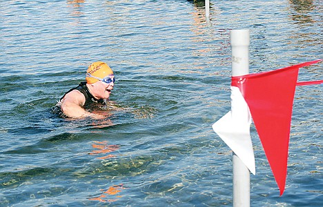 "I wanted to do the inaugural," said Kathy Gentili, a recreational swimmer from Spokane Valley who was all smiles when she finished the crossing, and crawled to the shore of The Coeur d'Alene Resort Golf Course. "I wanted to do a first of something, and I did."