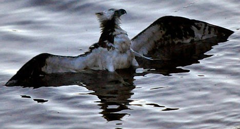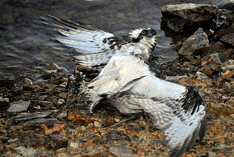 The osprey remained in the shallow water for about five minutes as it recovered.