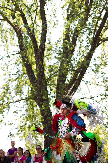 To close out the Feast of the Assumption, tribal children dressed in regalia danced in traditional Native American fashion for the onlooking crowd circled around them The Shooting Stars dancers performed in groups as they danced wildly to traditional music. Fifteen-year-old Franky Skwanqhqn has been doing the traditional dancing for seven years and said the event and the dancing give him an opportunity to be closer to the tradition of the Coeur d'Alene tribe.
