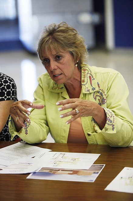 Kalispell Public Schools Superintendent Darlene Schottle discusses plans for upgrading local elementary schools Aug. 16, 2012, during a meeting at Edgerton Elementary School.