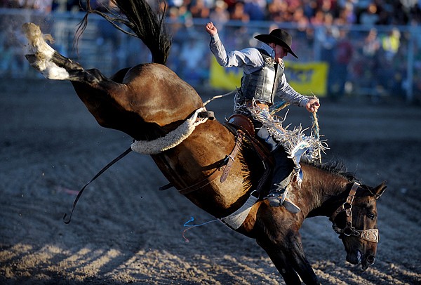 The saddle bronc competition was won by Great Falls’ Clay Gruel, who completed his ride on Next 2 U seconds after watching his brother Coulter fly off the saddle of Cover Story.