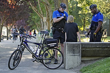 Parking their bikes under a tree, the towering men in Coeur d'Alene Police uniforms motioned for a teenager to step over from a group of pals.