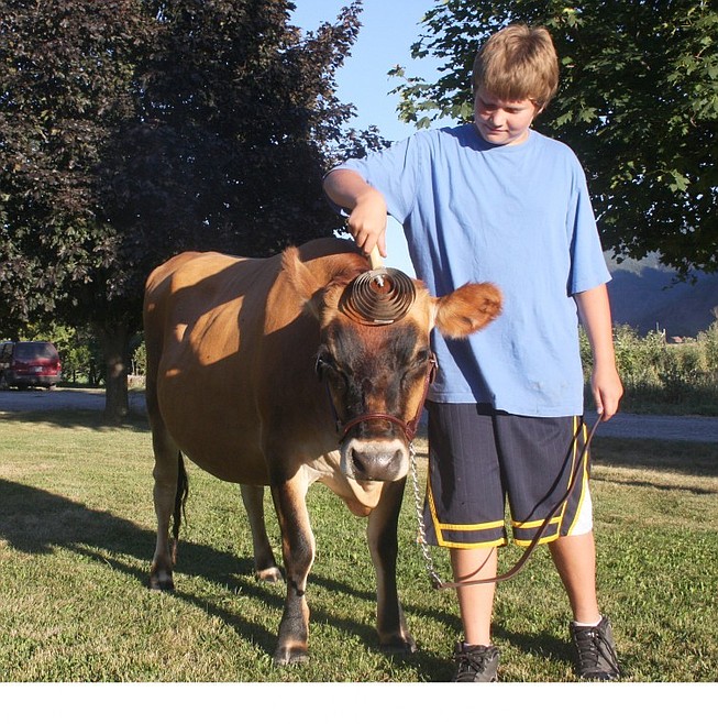 Riley Riffle, 11, with his three-year-old Jersey cow, Pixie.